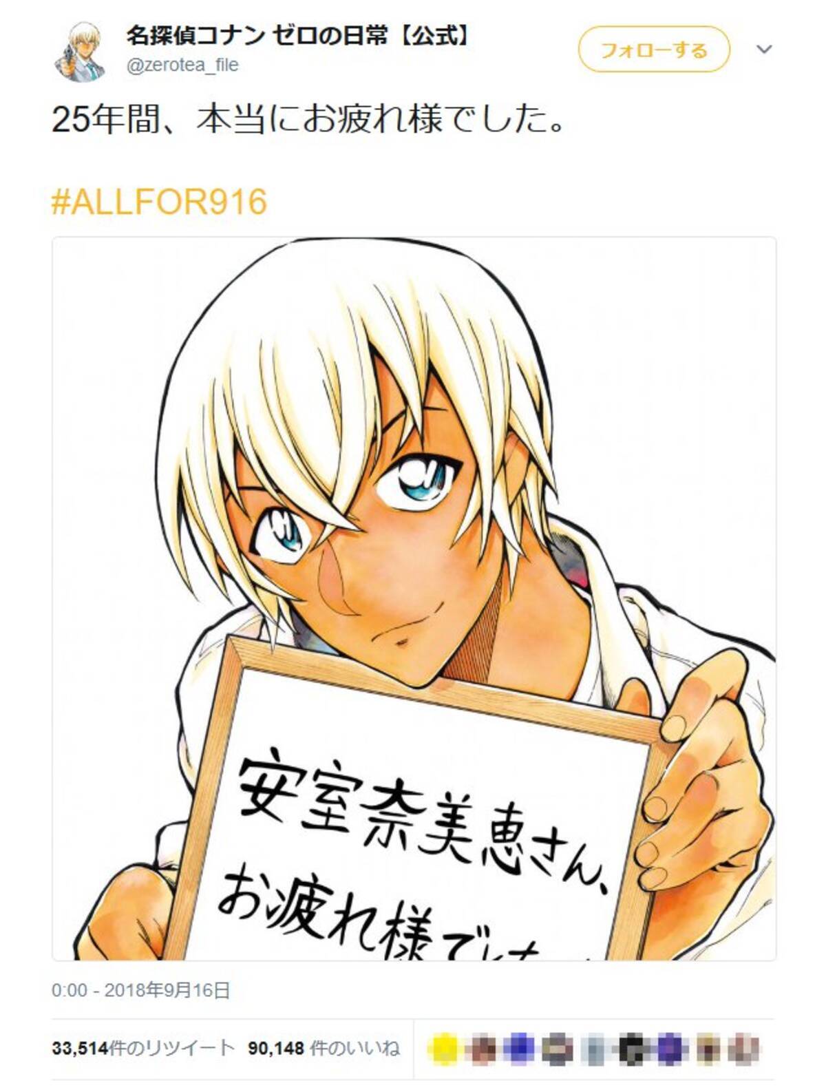 名探偵コナン ゼロの日常 の安室透が Twitter で引退する安室奈美恵さんにメッセージ 18年9月16日 エキサイトニュース